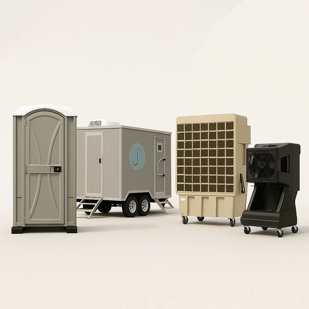 With timely delivery, professional setup, and spotless sanitation, we take care of the details so you can focus on enjoying your event. Whether it’s keeping your guests cool, comfortable, or simply cared for, we’ve got you covered.